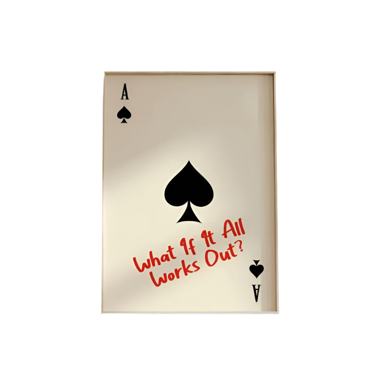 Forbedr dit rum med den mystiske charme fra plakaten “As of Optimism”. Den består af en elegant kløver es og den inspirerende sætning “Hvad nu hvis alt kunne lade sig gøre?”, som tilføjer et strejf af sofistikering og subtil opmuntring. En perfekt blanding af mysterium og inspiration til ethvert rum.