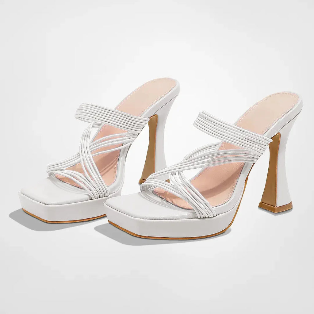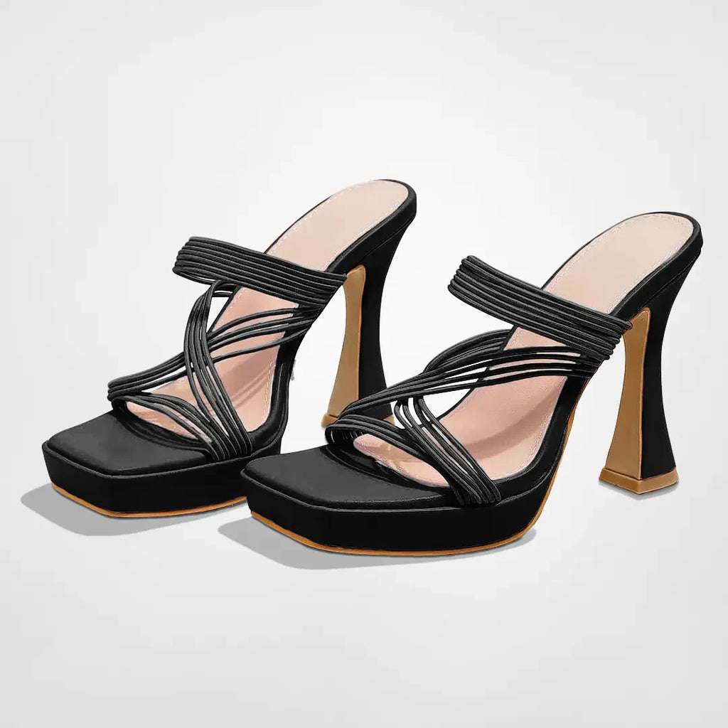 Løft din stil med Agnes-hæle med tværstrop med åben tå, designet til at give et statement. Disse hæle har et elegant cross-strop-design og en moderne åben-tå-silhuet, og tilføjer et strejf af charme til ethvert outfit.