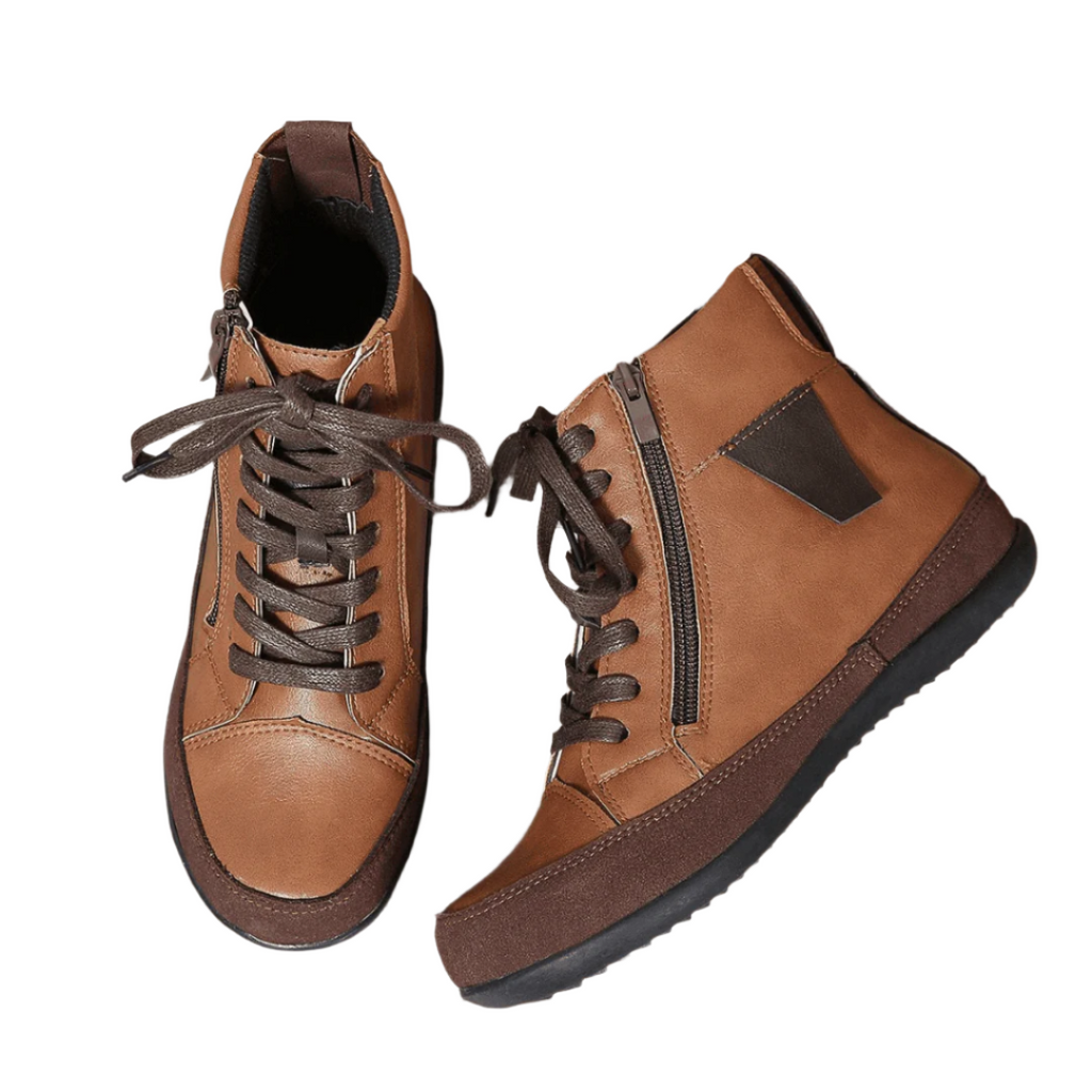 Brielle Damestøvler med snørebånd blander klassisk design med moderne funktionalitet. Med en silhuet til midt på læggen er disse støvler fremstillet med fokus på både stil og komfort. Kombinationen af snørebånd foran og lynlås i siden sikrer en sikker pasform og nem brug, hvilket gør dem til et alsidigt supplement til din garderobe.