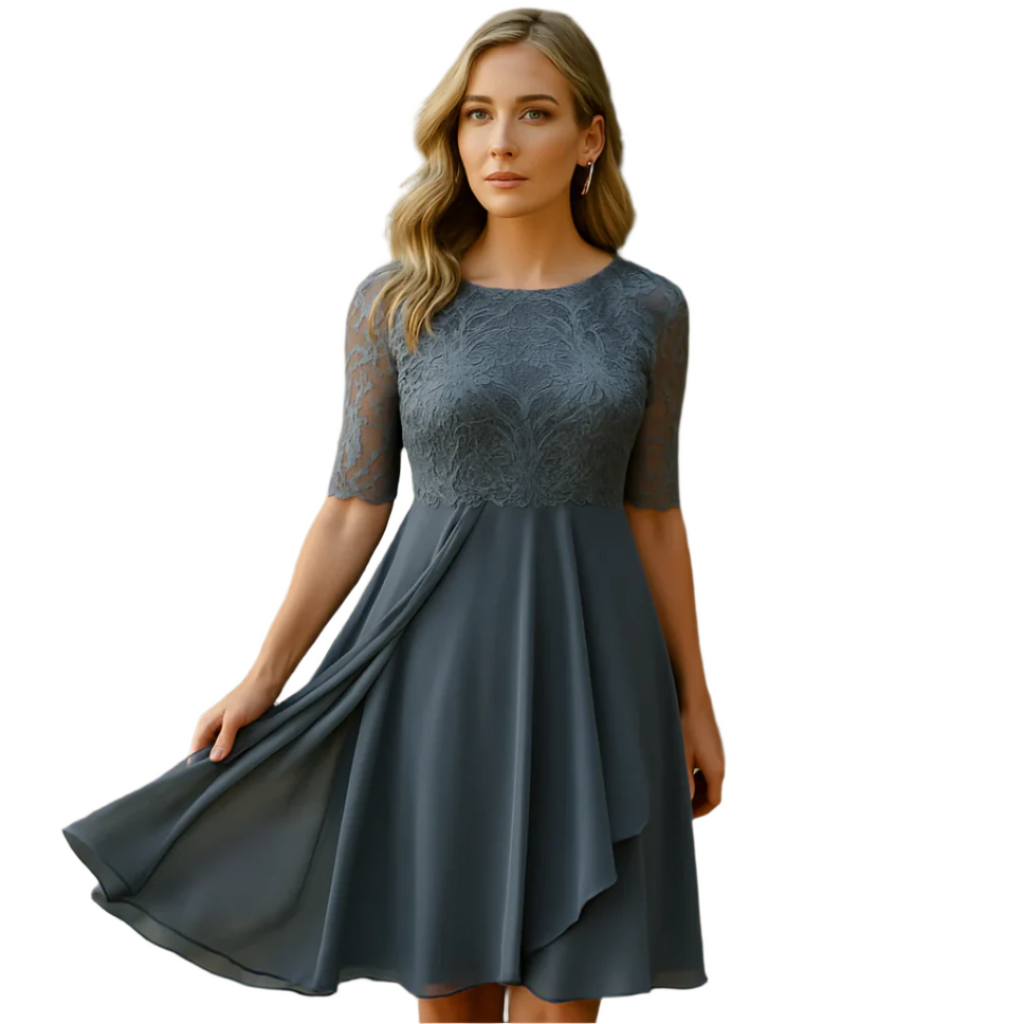 Kjolen er fremstillet i et let og åndbart materiale, der sikrer komfort hele dagen. Den rundhalsede udskæring og de 3/4-lange ærmer giver et klassisk og alsidigt udtryk, der passer til enhver anledning.