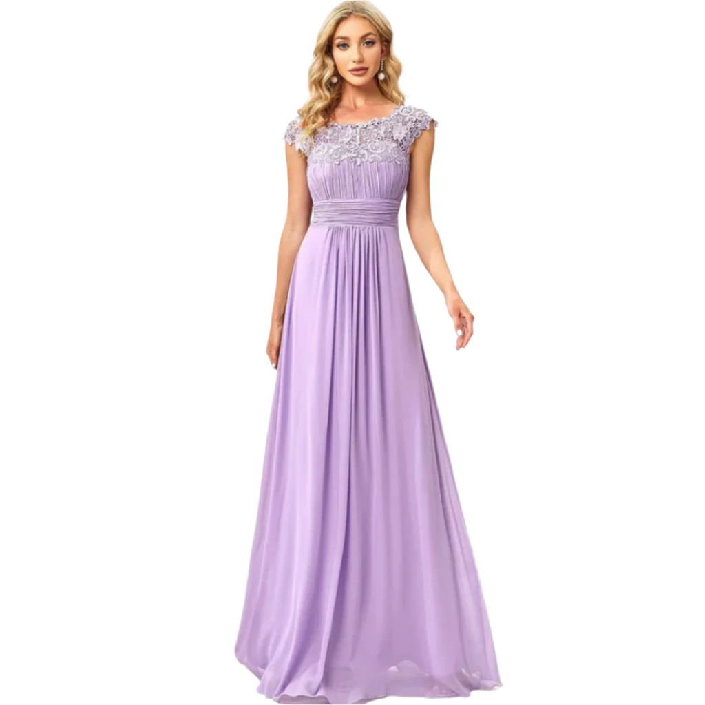 Denne maxikjole kombinerer tidløs elegance med moderne plisserede kappenærmer, der tilføjer et sofistikeret og feminint touch. Den lange længde og den lette pasform gør den ideel til både formelle og uformelle begivenheder, hvor du ønsker at udstråle stil og klasse.
