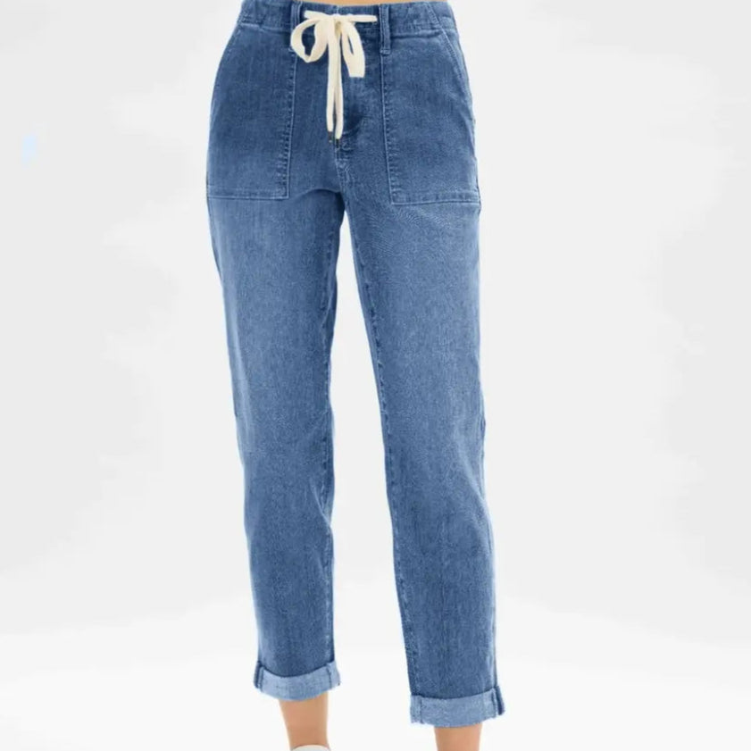 Ella Denim Joggers kombinerer det klassiske look af denim med komforten fra joggere. Med superstrækstof tilpasser disse joggingbukser sig til enhver bevægelse og tilbyder uovertruffen lethed og fleksibilitet til brug hele dagen.