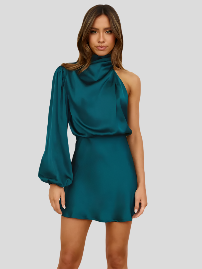 Ellie Satin One-Shoulder Midi-kjolen tilbyder en raffineret silhuet med sin asymmetriske halsudskæring og single-shoulder design. Denne kjole er fremstillet af luksuriøst satin og udstråler sofistikering, hvilket gør den til et ideelt valg til formelle begivenheder og særlige lejligheder.