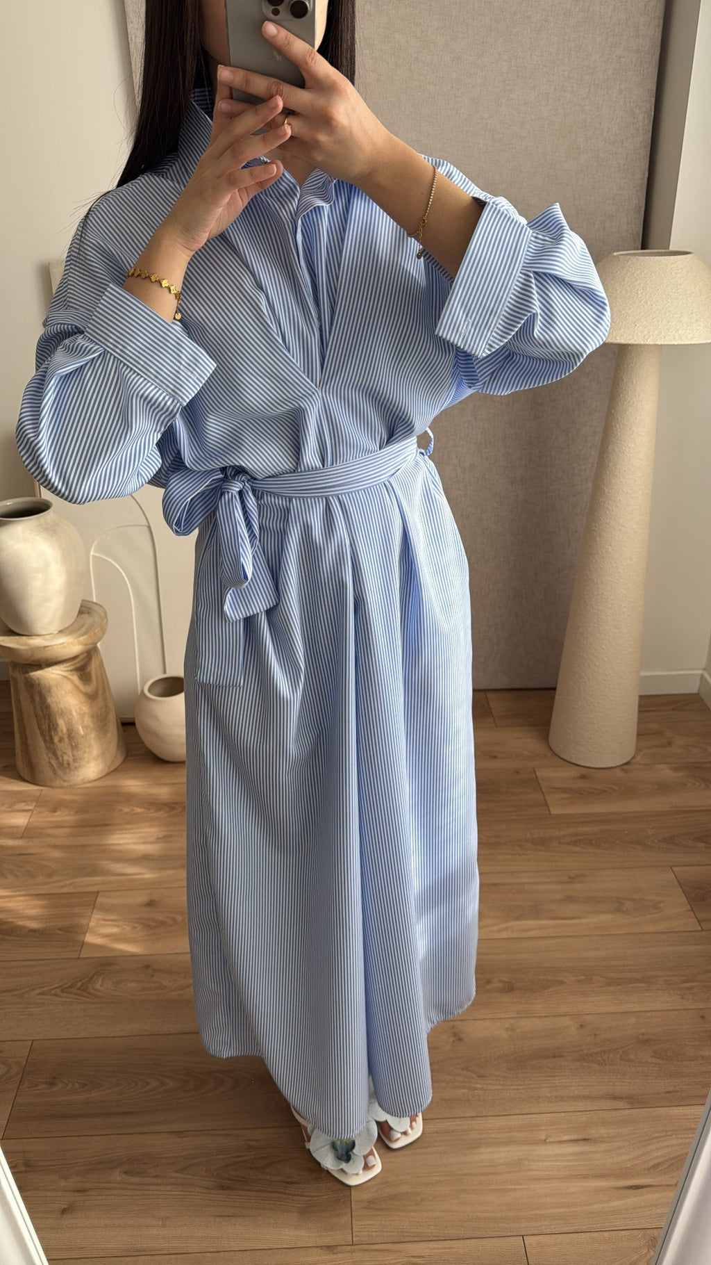 Elowen Lang Skjortekjole er stedet, hvor moderne minimalisme møder tidløs elegance. Med sin skræddersyede skjortekrave, lange ærmer og rene linjer tilbyder dette stykke en struktureret, men afslappet silhuet, der smigrer alle kropstyper. Designet til alsidig styling, overgår den ubesværet fra hverdagstøj til elegante aftener med et enkelt skift af accessories.