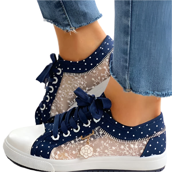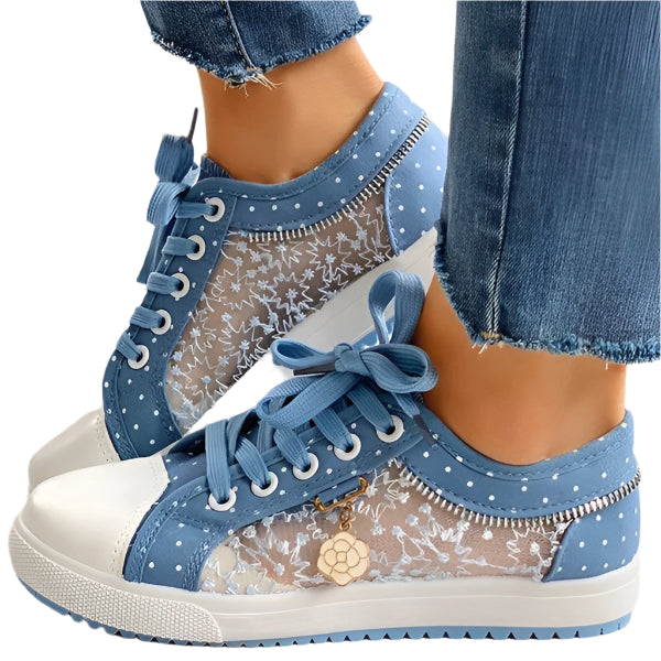 Disse alsidige damesko kombinerer funktion og æstetik i et let og tidløst design. Det åndbare overmateriale hjælper med at holde dine fødder friske, mens den skridsikre ydersål giver et sikkert fodfæste. Skoene er perfekte til kvinder, der ønsker både komfort og et moderne look – uden at gå på kompromis.