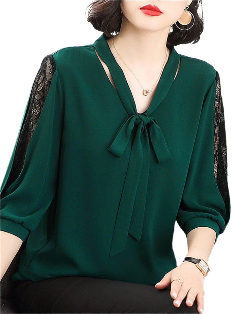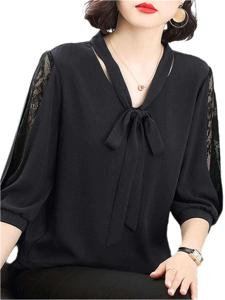 Blondekantede ærmer tilføjer et romantisk touch, mens den bløde silhuet øger komfort og selvtillid. Uanset om det er parret med skræddersyede bukser eller en flydende nederdel, leverer Estella tidløs sofistikering.