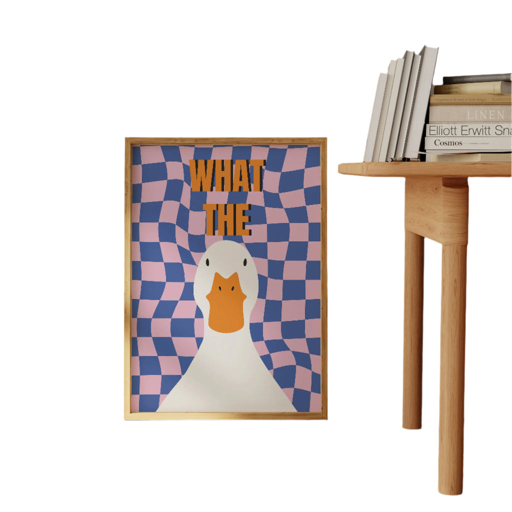Bring et strejf af lethed til dit hjem med kollektionen af plakater « Hvad er nyt ?». Med sin yndige, desorienterede and og den frække sætning « Hvad er nyt ? », tilbyder disse plakater en perfekt balance mellem humor og stil. De vil få folk til at smile og bringe en glad stemning til ethvert rum.