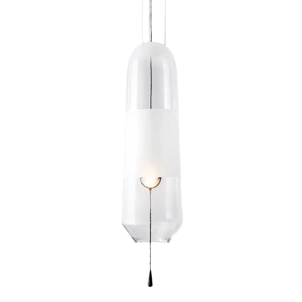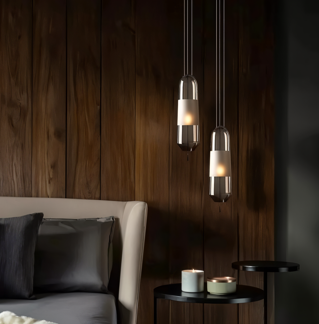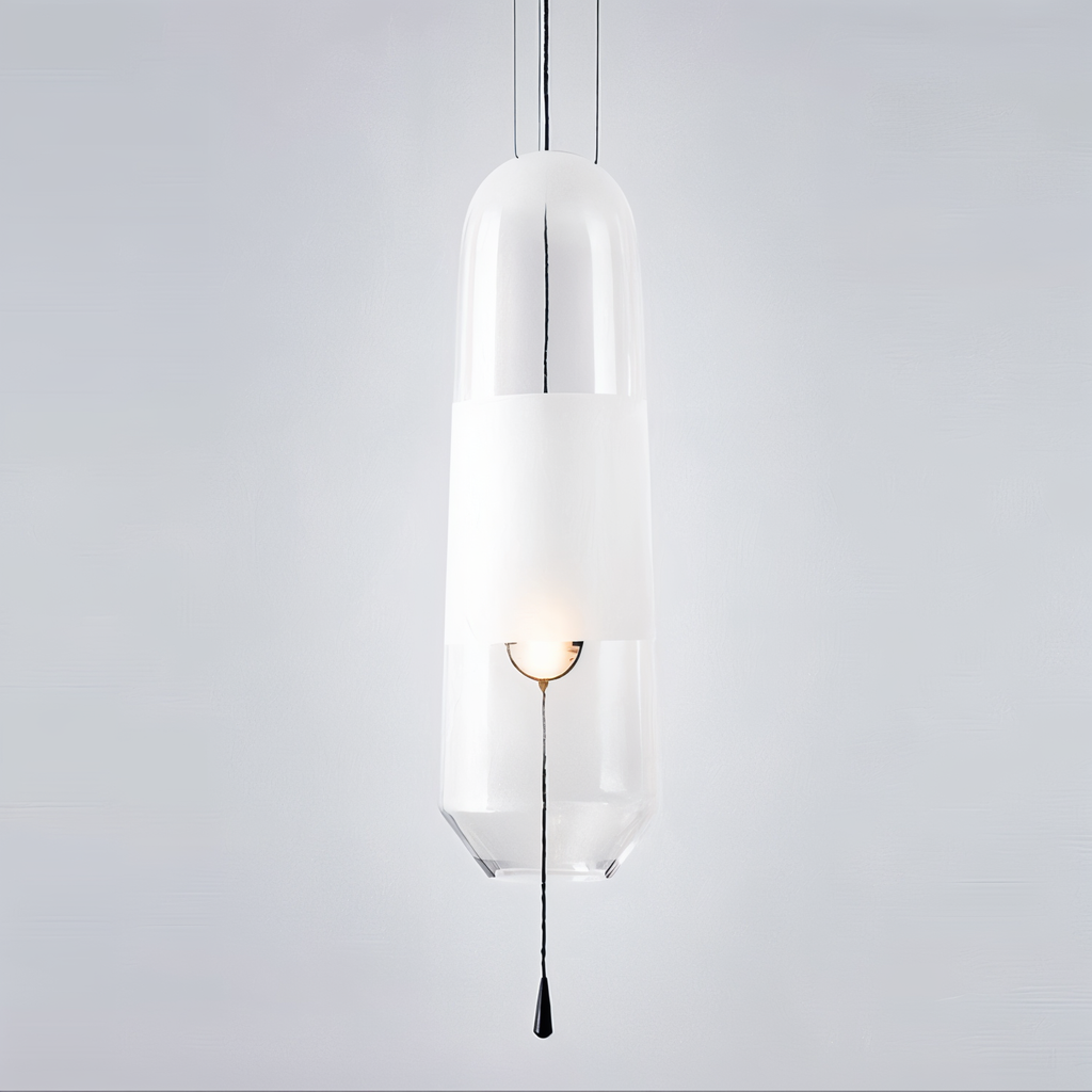GlowCurve Retro Glaspendellampen blander vintage elegance med moderne enkelhed, hvilket gør den til et perfekt belysningsvalg til køkkener, spisestuer og opholdsrum. Med sin aflange klare glasskærm og minimalistiske silhuet skaber denne pendellampe en blød, stemningsfuld glød, der forbedrer atmosfæren i ethvert rum.