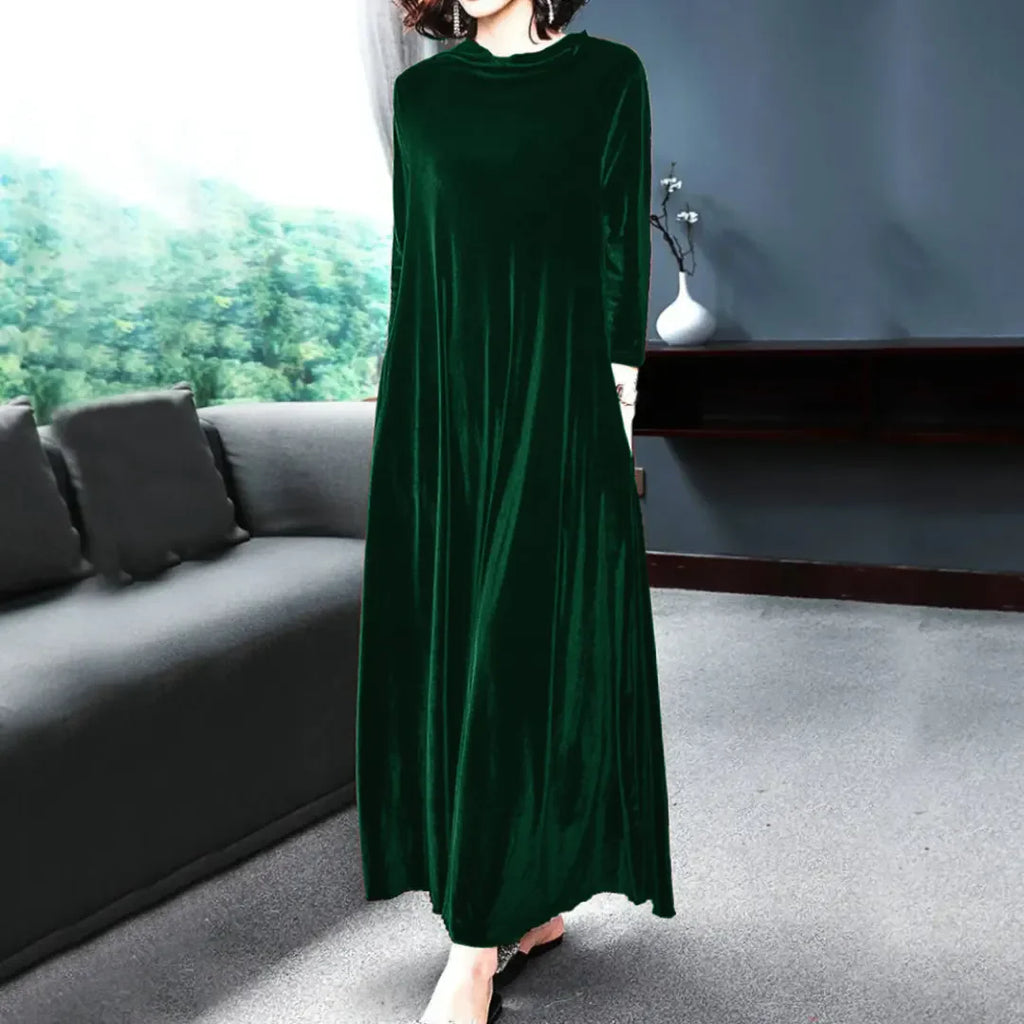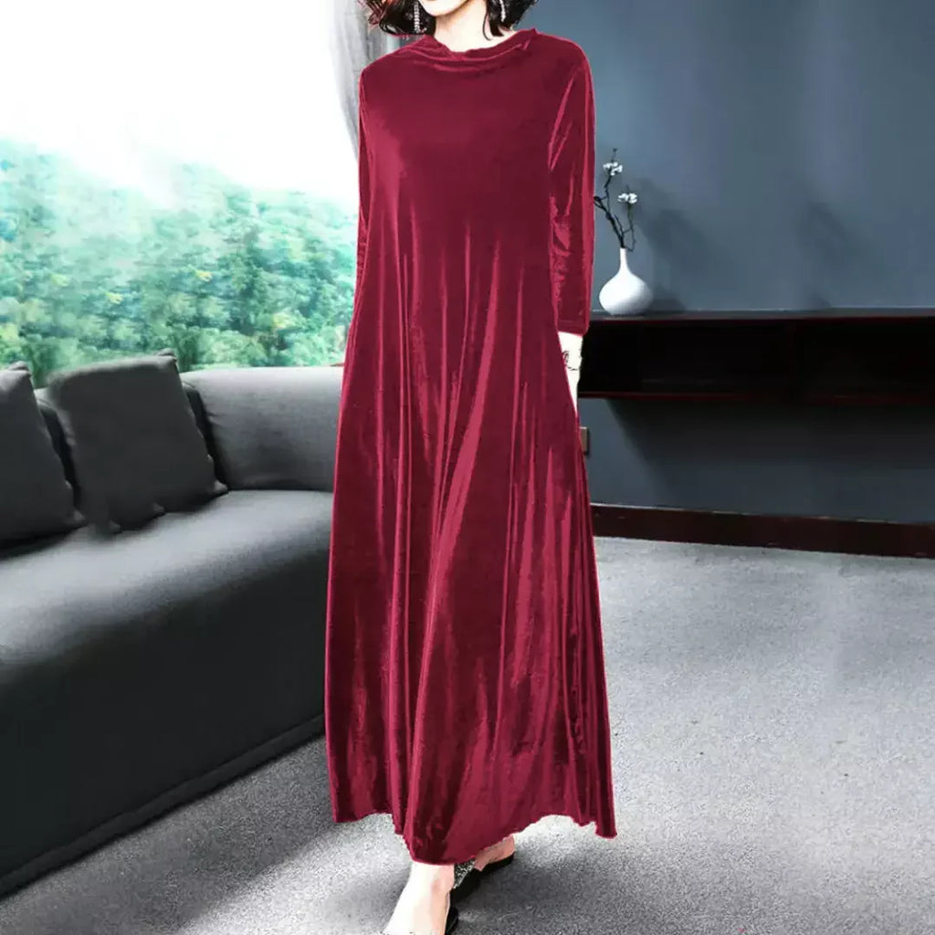 Iselin - Luksuriøs fløjlskjole er mere end bare en kjole, det er en oplevelse. Det lette, men fyldige fløjlsstof falder smukt og giver dig en flatterende pasform og bevægelsesfrihed.