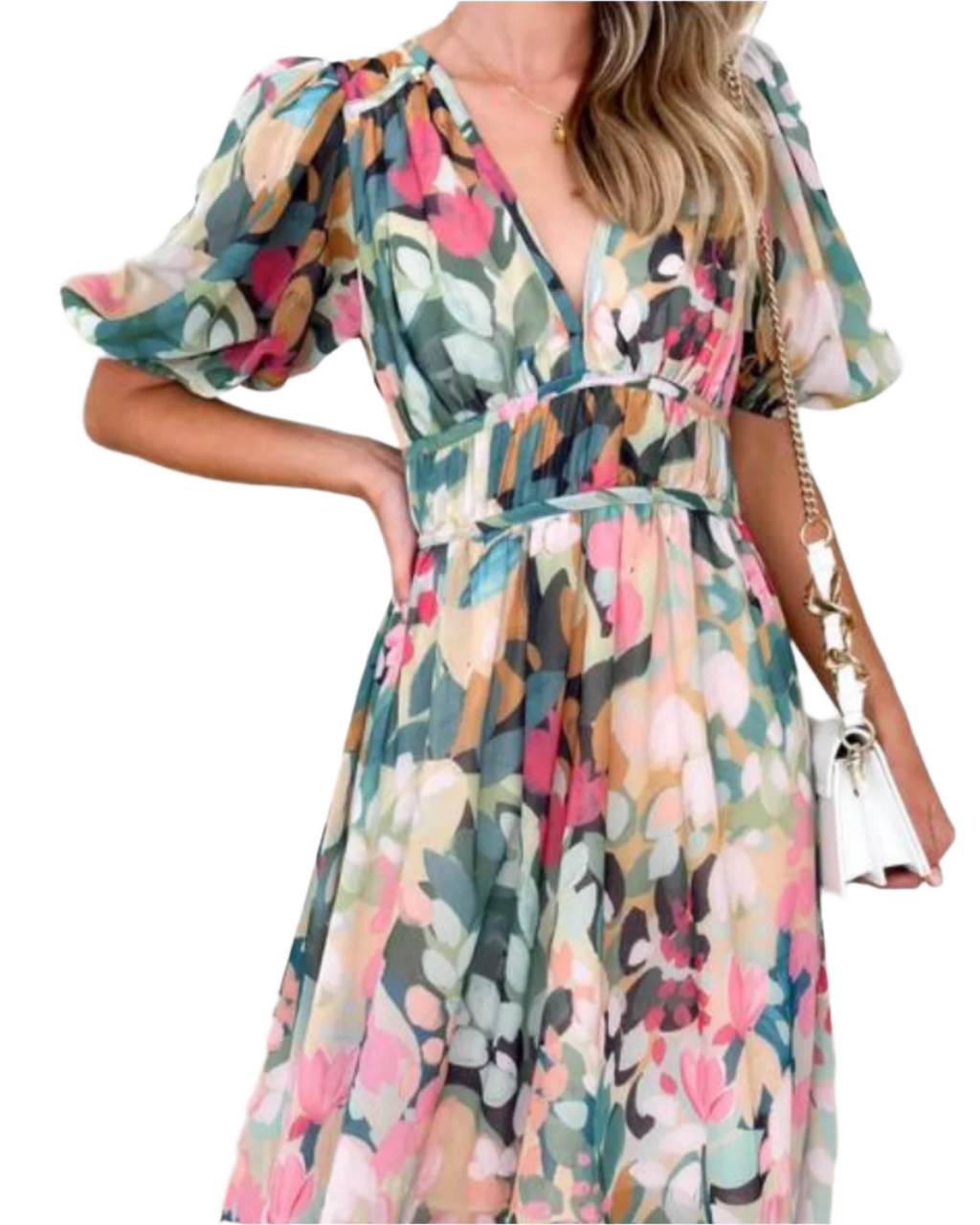 Juliette blomsterprint mellemlang kjole giver et blødt og elegant touch til din garderobe. Med et delikat blomsterprint og en flatterende silhuet er den perfekt til både afslappede dage og mere elegante øjeblikke. Det lette stof sikrer komfort hele dagen, mens det mellemlange snit giver yndefuld bevægelse.