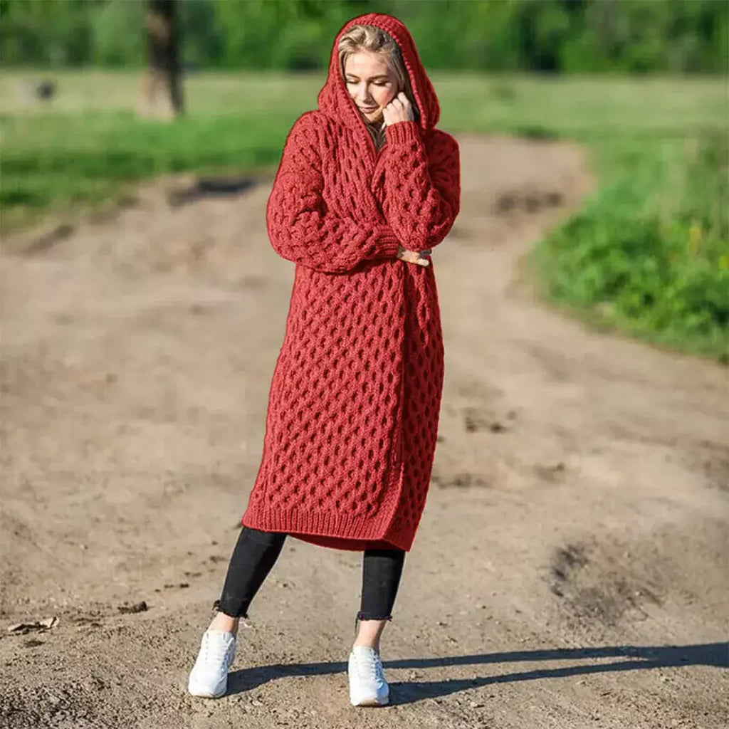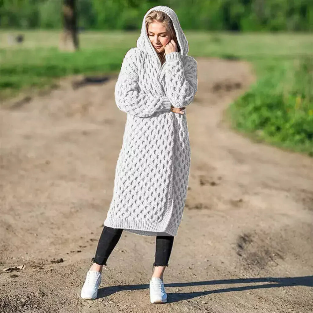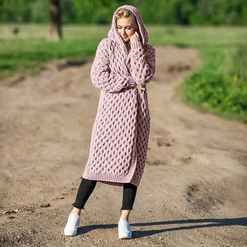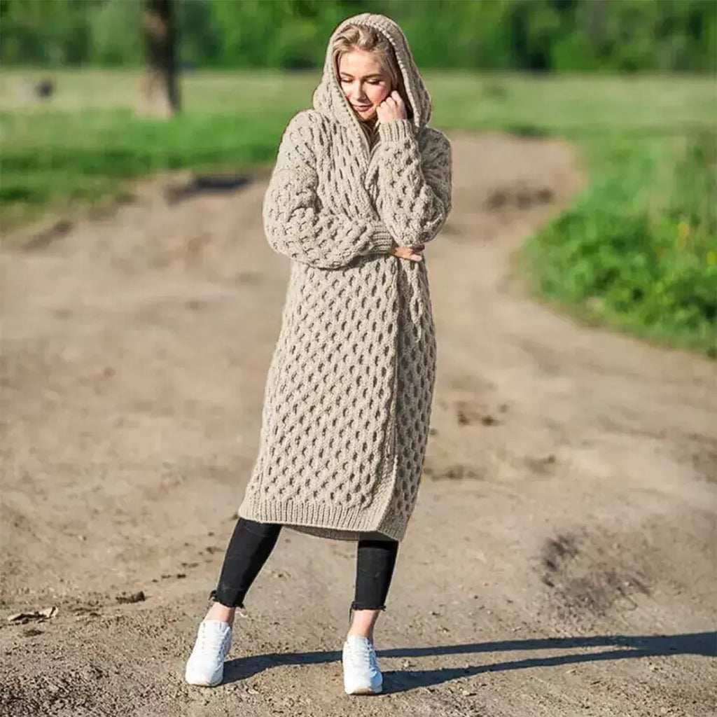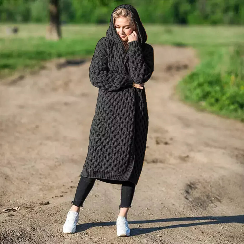 Vi introducerer Laila cardiganjakken med hætte, der kombinerer komfort og sofistikering i ét stilfuldt stykke. Den lange silhuet og det bløde stof giver varme og alsidighed, perfekt til lagdeling på kolde dage. Uanset om du er ude at løbe ærinder eller slapper af derhjemme, giver denne jakke den ultimative hyggefølelse.