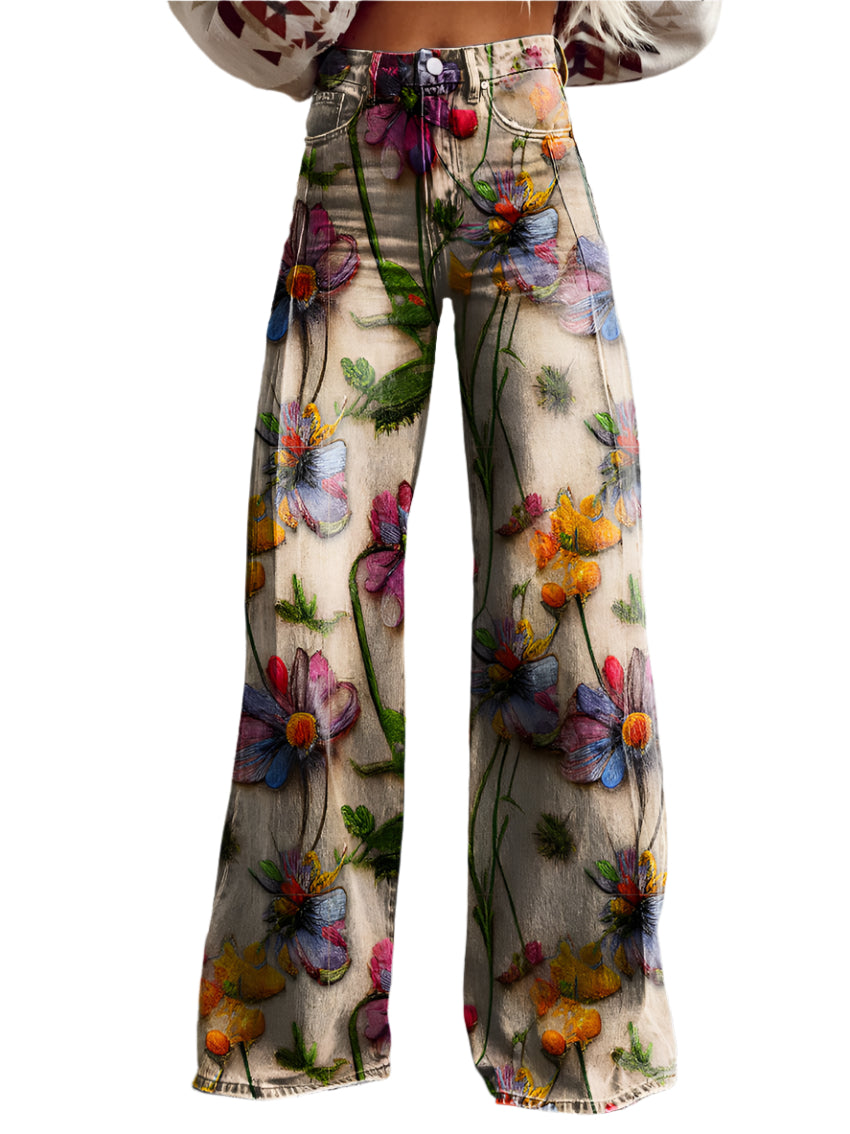 Buksen Lucy forener komfort og kreativitet i et letbåret stykke. Med sin brede pasform og en række blomster- og mønstertryk tilfører den bevægelse og personlighed til dit daglige look. Ideel til brunch, gåture eller afslapning med stil.