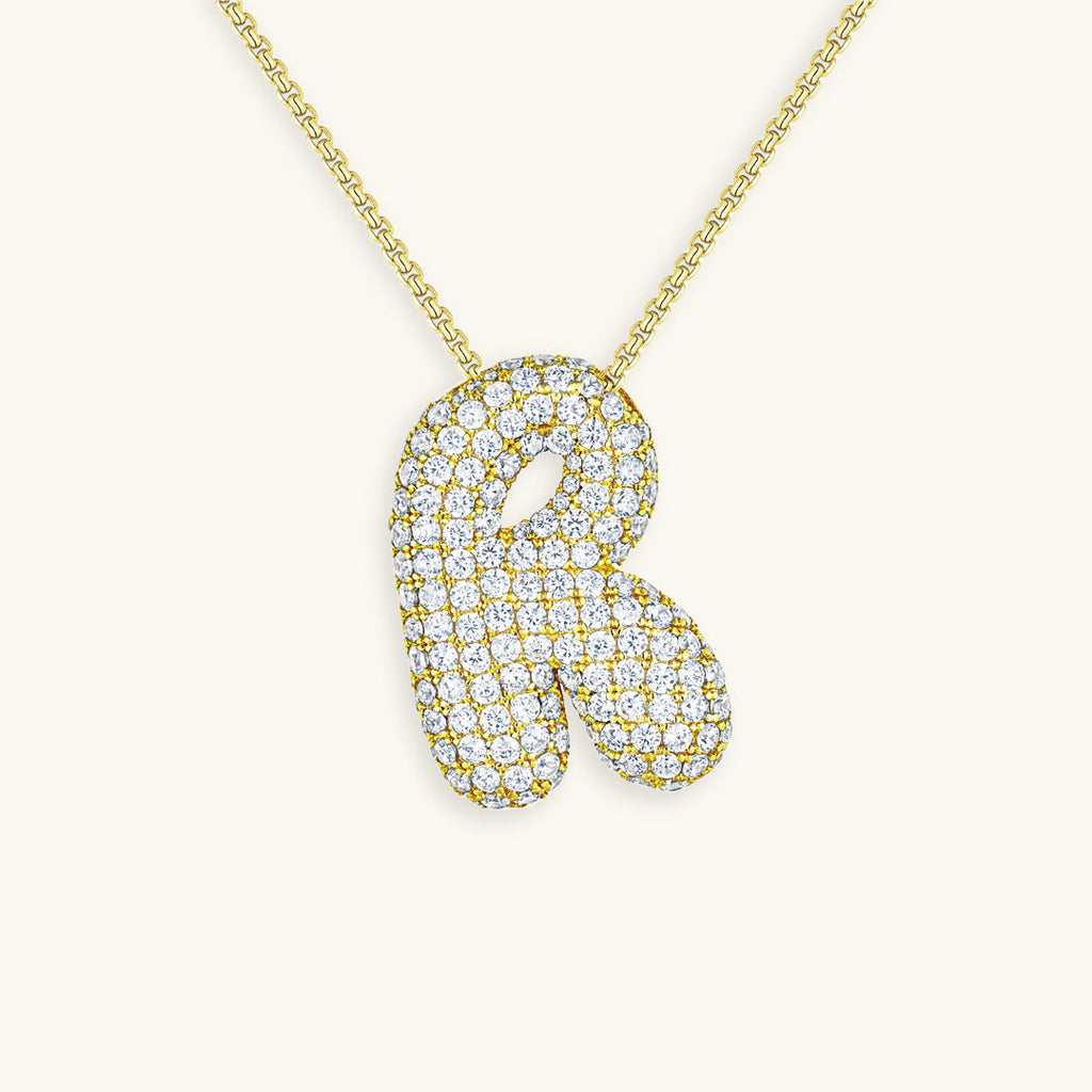 Denne halskæde fanger øjet med sin blanke boble-bogstavstil og funklende look. Med sin luksuriøse finish og personlige præg er den et statement-smykke, der komplementerer både hverdags- og festoutfits. Gaven kommer smukt præsenteret og er klar til at overraske.