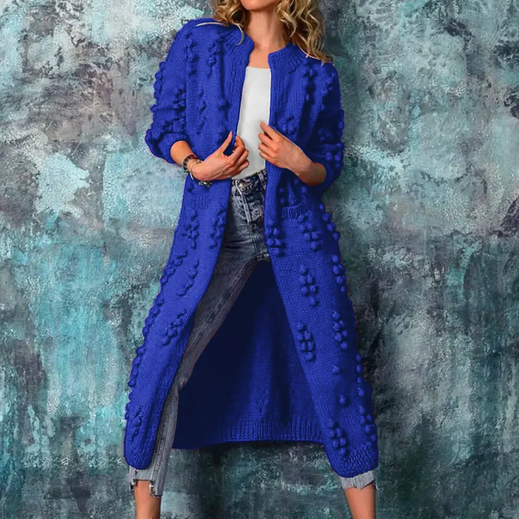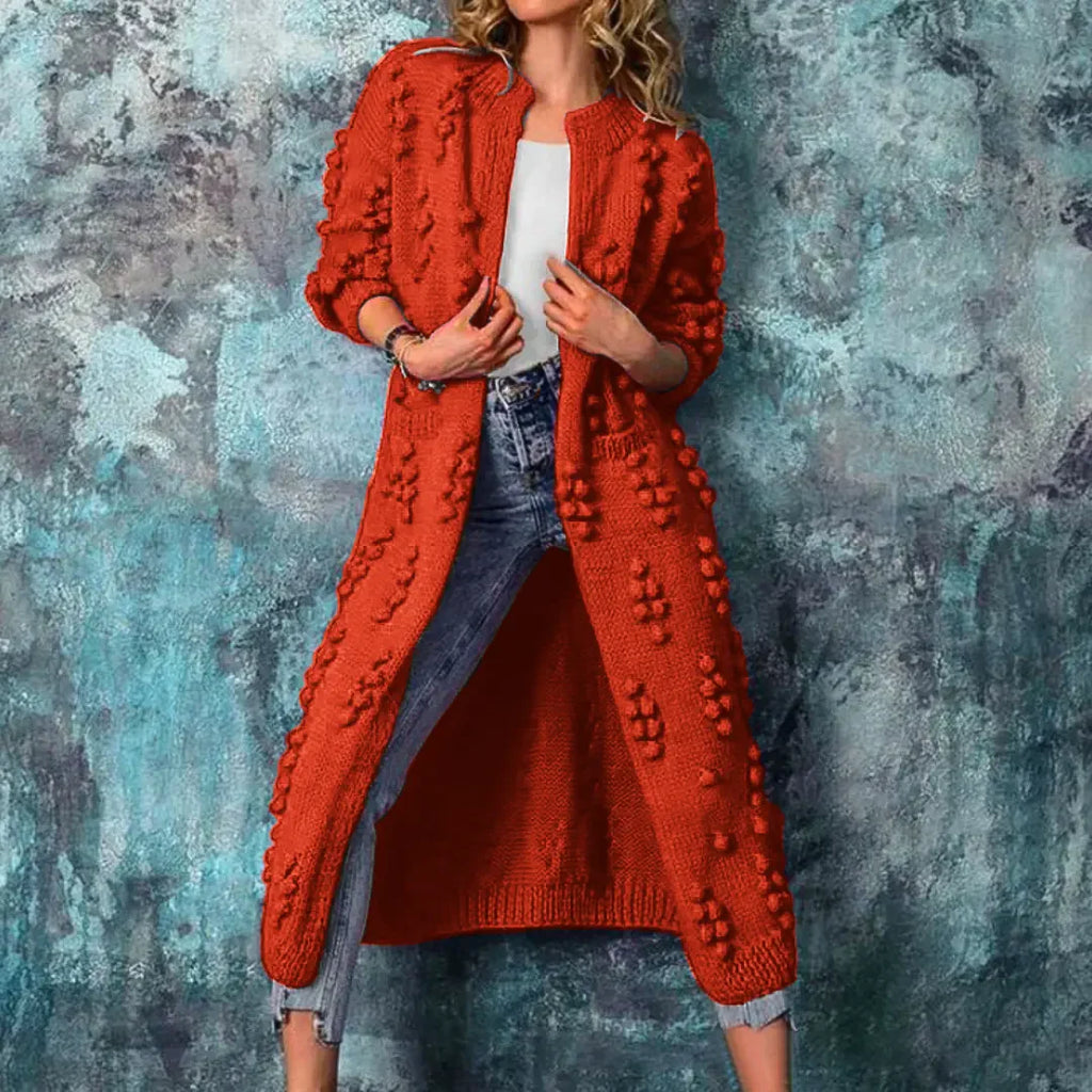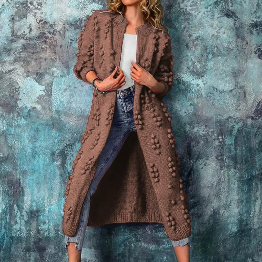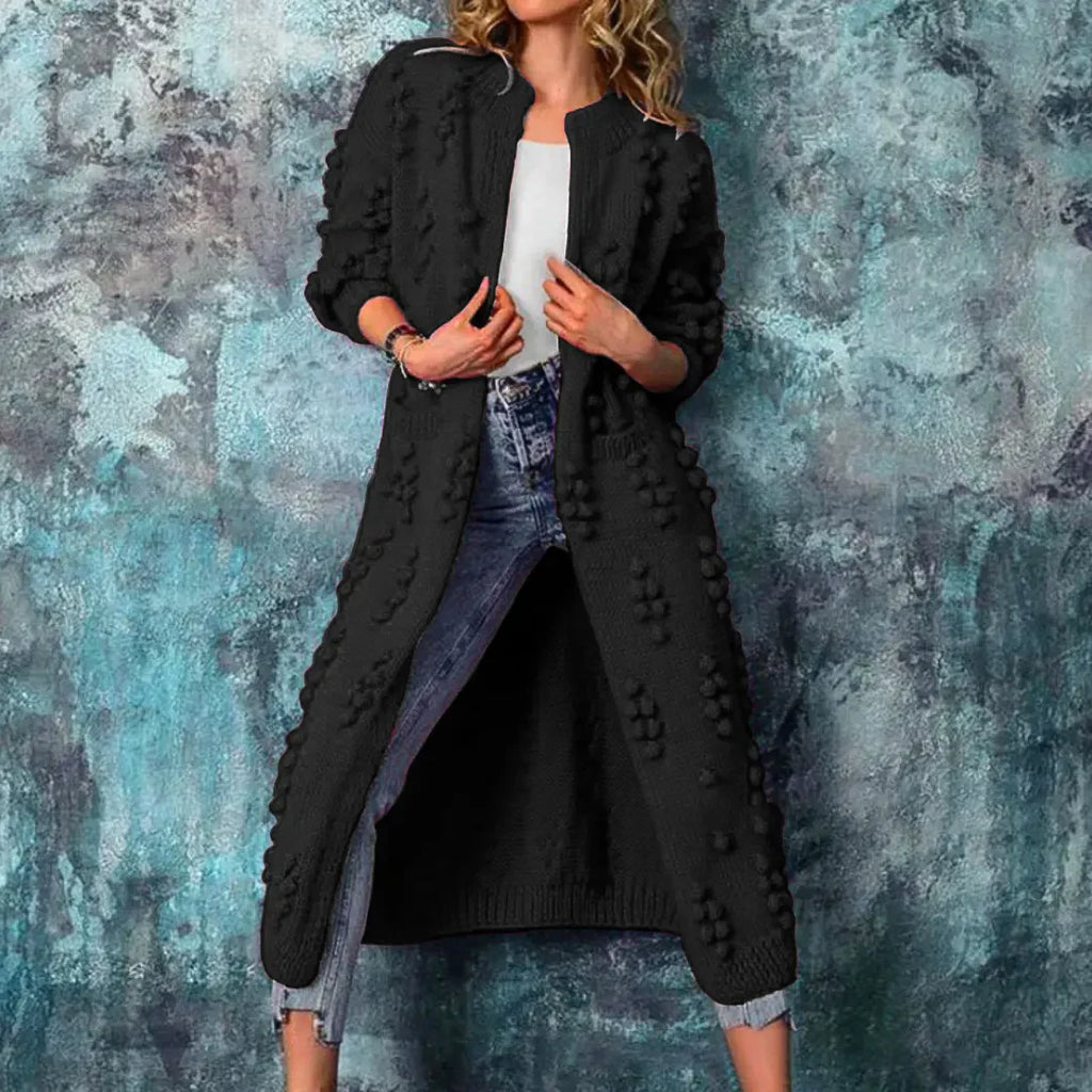 Løft din stil med Magda afslappet åbenstrikket lang cardiganjakke, perfekt blanding af komfort og smart stil. Designet med en afslappet pasform og et luftigt strikmønster, denne cardigan draperer smukt over ethvert outfit. Uanset om det er lagt over en kjole eller parret med jeans og en top, tilføjer Magda et strejf af ubesværet sofistikering til dit look.