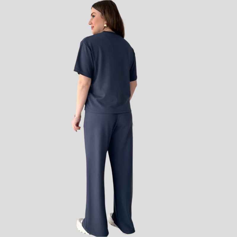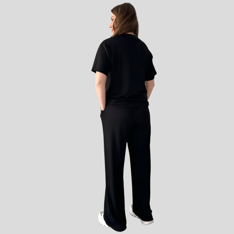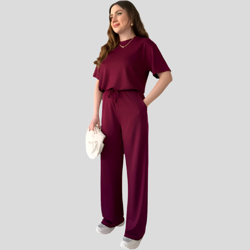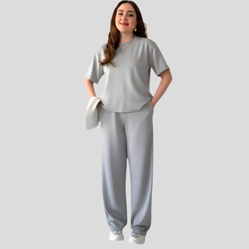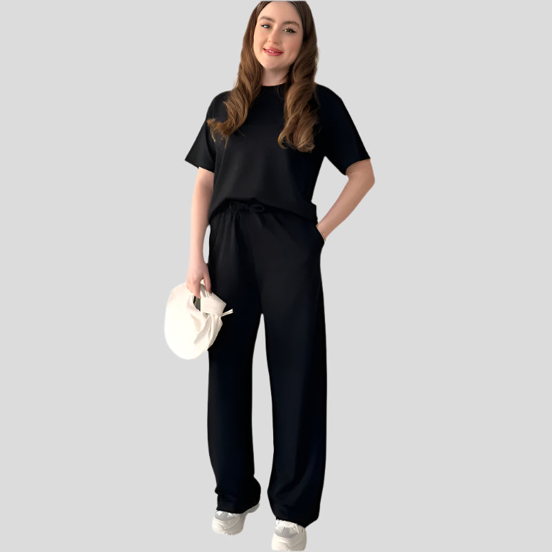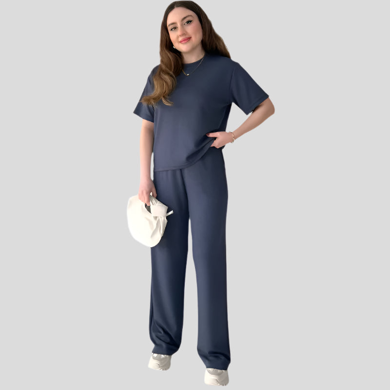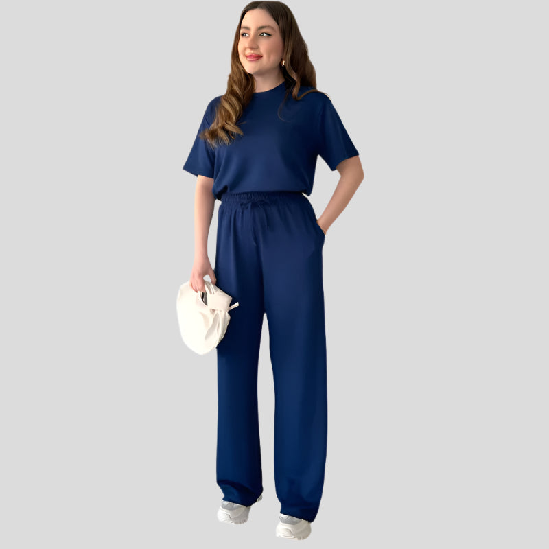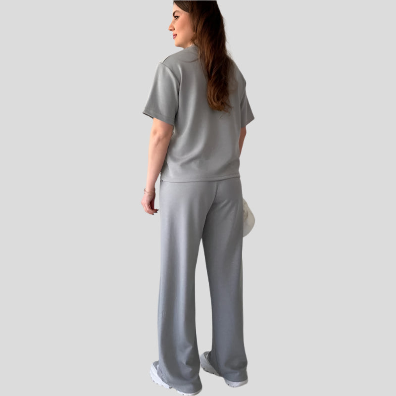 Mira Letvægtstop med rund krave og fleksible taljebukser er designet til kvinder, der værdsætter både komfort og stil. Det åndbare stof sikrer, at det kan bæres hele dagen, mens den afslappede pasform giver nem bevægelse, hvilket gør det perfekt til forskellige aktiviteter.