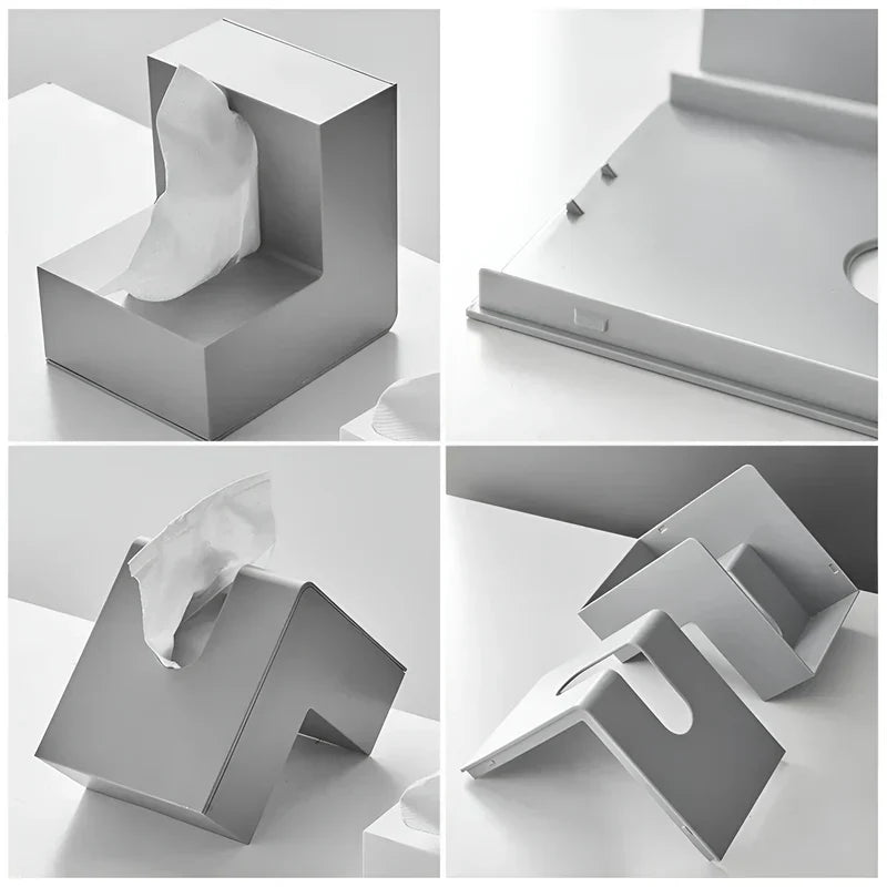 Denne moderne L-formede tissueorganisator er designet til at give en praktisk og elegant løsning til at holde dine næsebind pænt opbevaret. Den pladsbesparende L-form gør det muligt at udnytte din tilgængelige overflade bedst muligt, så næsebindene er inden for rækkevidde, samtidig med at det forbedrer æstetikken i dit rum.