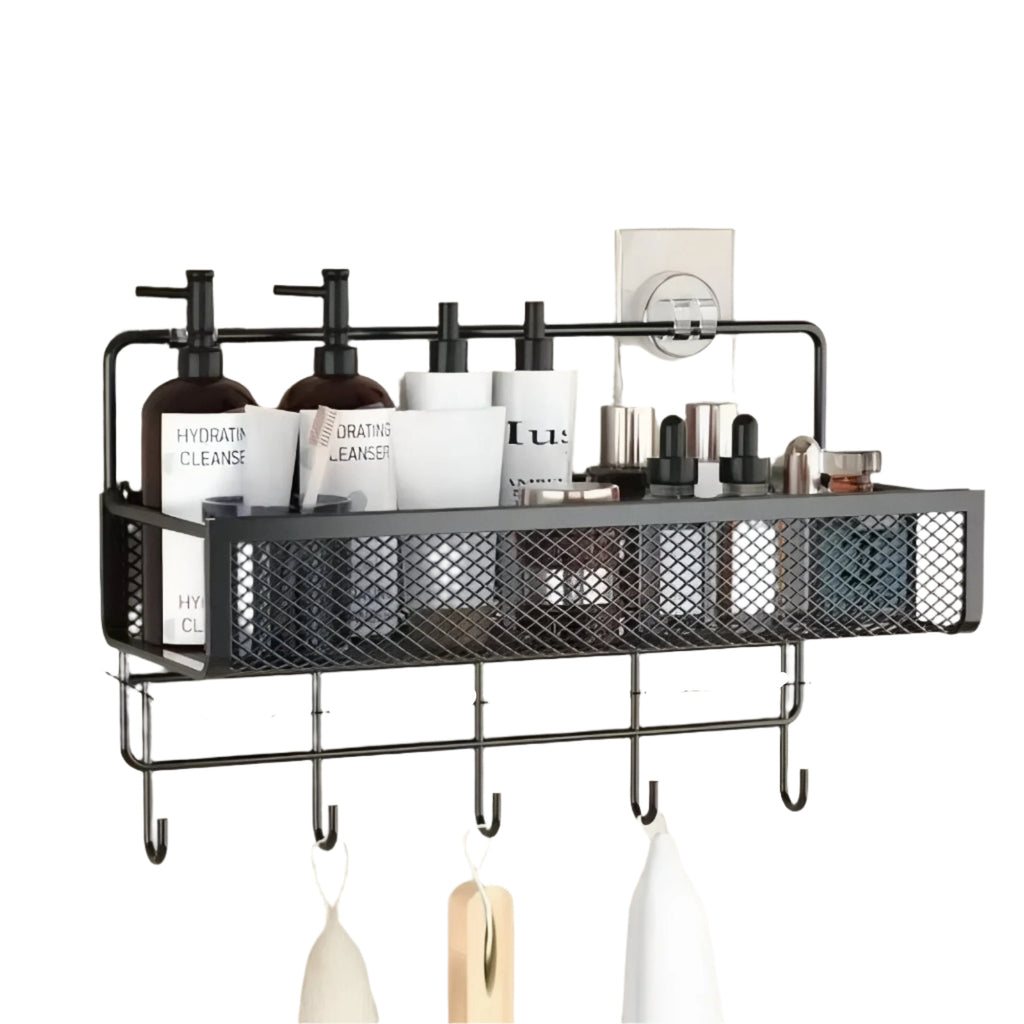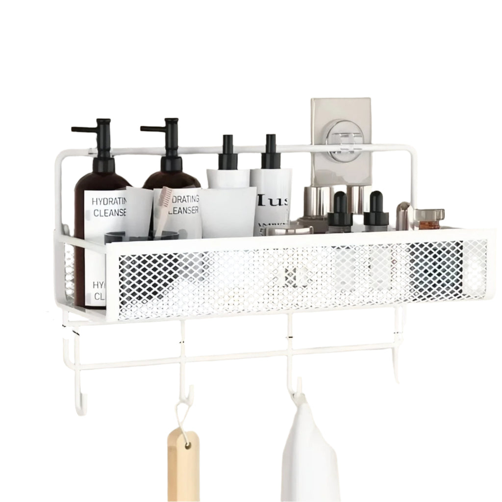 Optimér opbevaringen og stilen med NeatSpace væghylden. Denne multifunktionelle organizer kombinerer en elegant hylde til dine essentielle ting med indbyggede kroge til håndklær, børster og mere. Ideel til at skabe et ordentligt og rent rum i badeværelset, køkkenet eller entreen.
