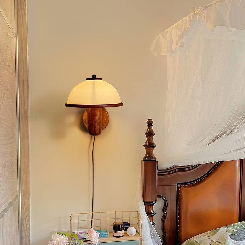 Unik svampeformet væglampe med realistisk trælook