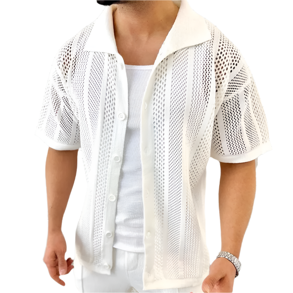 Opgrader din garderobe med Oliver Kortærmet Herre Cardigan med Knaplukning, designet til mænd, der værdsætter både stil og komfort. Den klassiske krave kombineret med knaplukningen foran giver et poleret look, mens de korte ærmer gør den ideel til varmere dage.