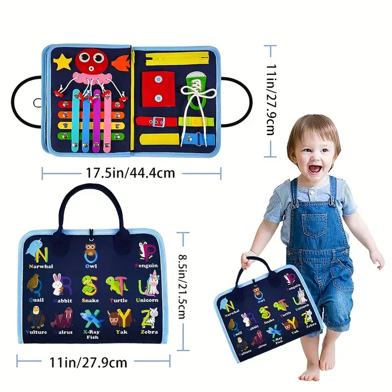 Fængslende sensorisk design: Kombinerer forskellige teksturer, kontakter, lynlåse og knapper for at begejstre børn og vække deres nysgerrighed.