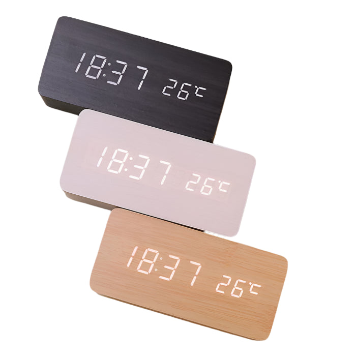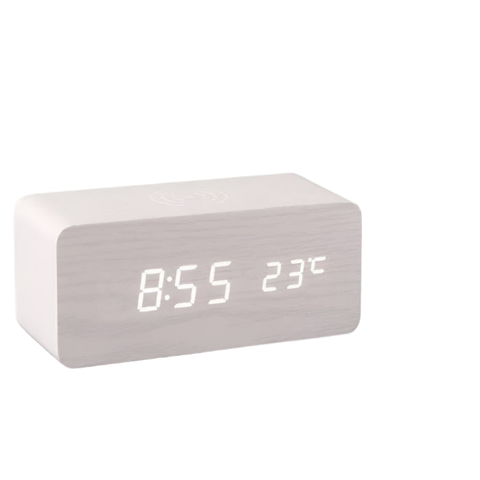 Vågn op med stil med det stemmestyrede SmartGlow LED-vækkeur i træ. Med en ren, moderne træfinish og et klart LED-display kombinerer dette minimalistiske vækkeur æstetisk elegance med praktisk teknologi. Det stemmeaktiverede display lyser op med en simpel lyd eller et tryk, hvilket giver bekvemmelighed uden at gå på kompromis med designet.