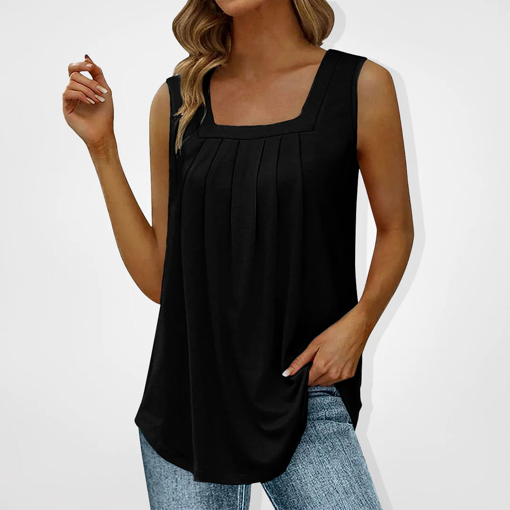 Moderne firkantet halsudskæring: Et struktureret, flatterende design, der tilføjer et strejf af sofistikering.