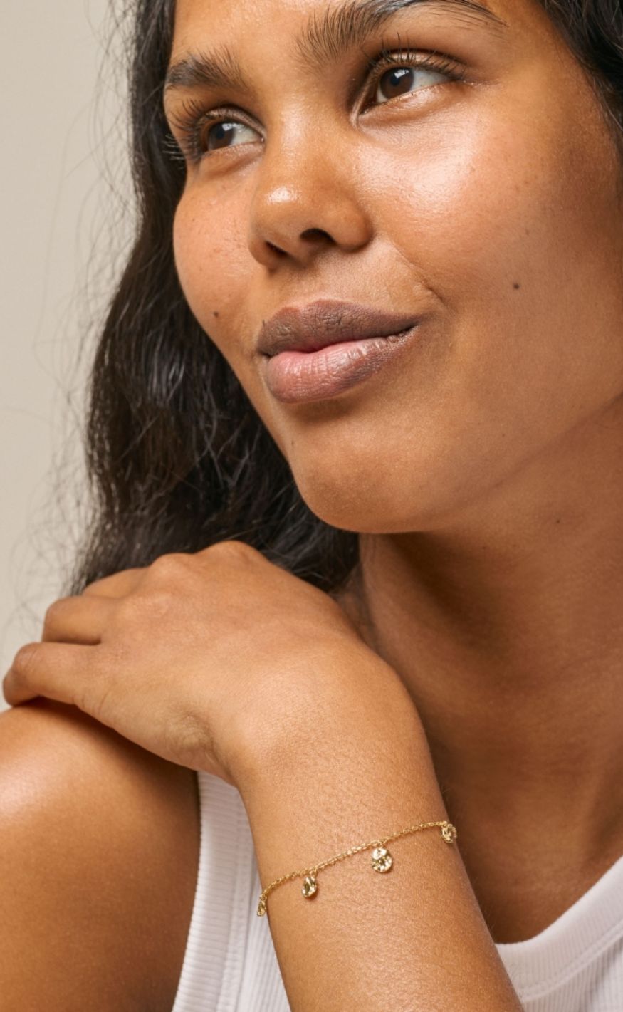 Veloura Copenhagen Refined Charms Armbåndet tilbyder et delikat design med en karakteristisk kant. Dens unikke kombination af fint håndværk og teksturerede elementer skaber et alsidigt smykke, der er velegnet til forskellige lejligheder.