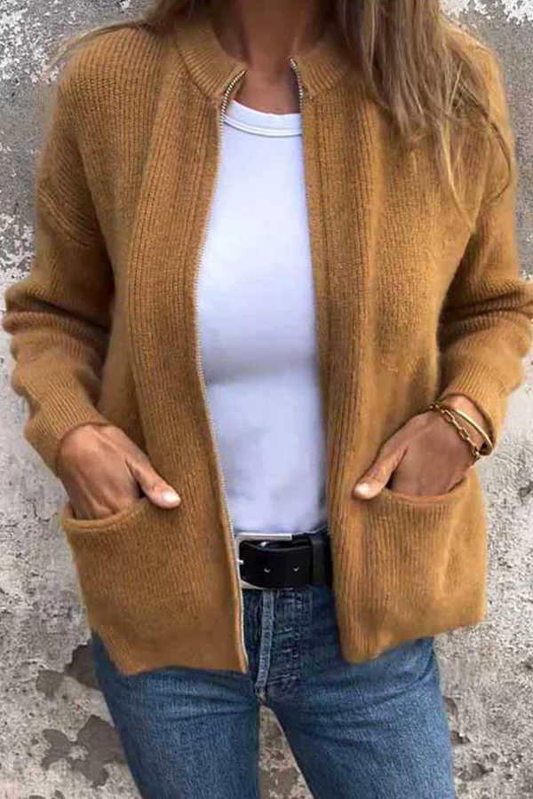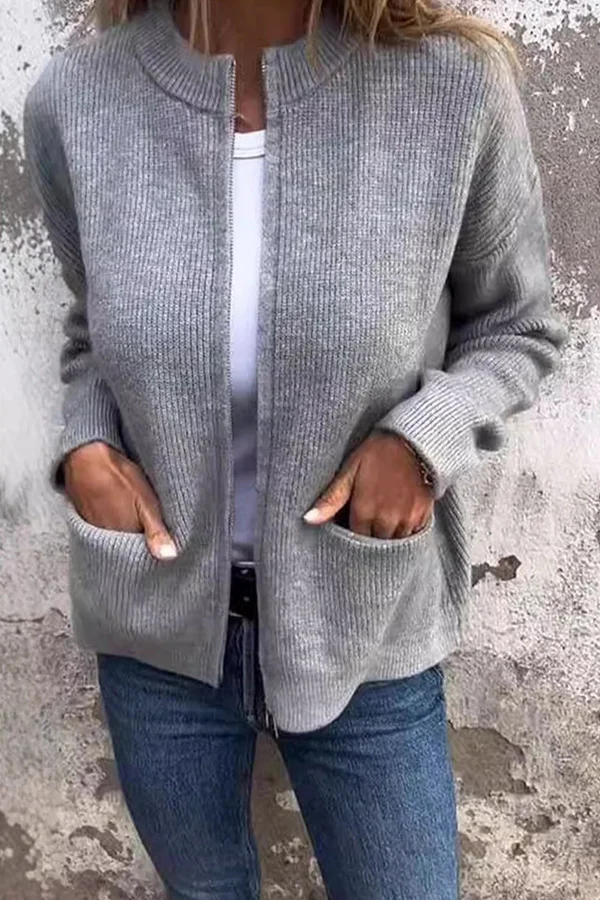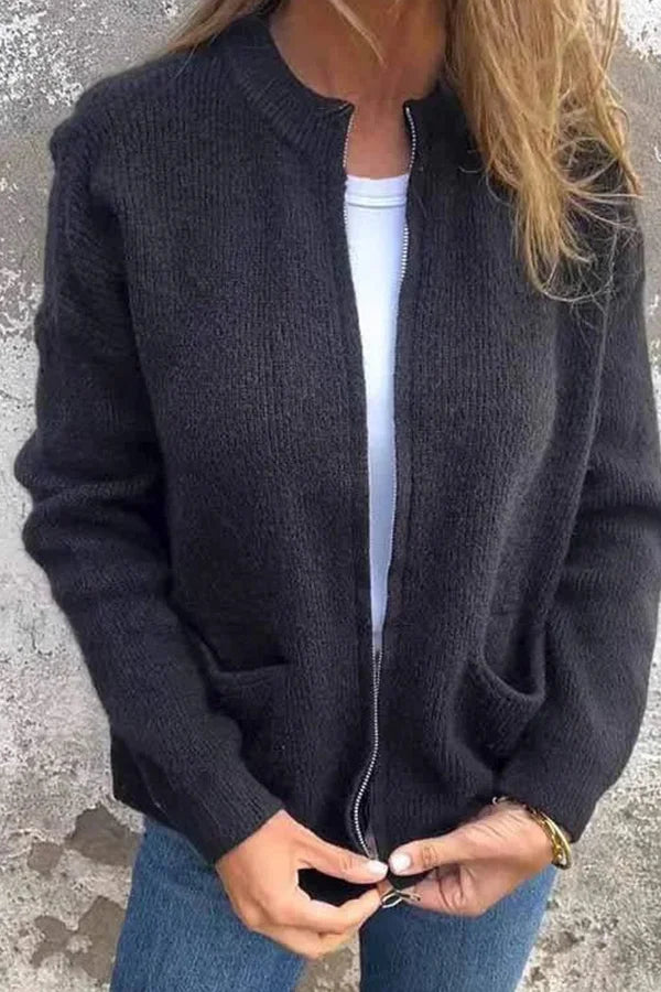 Vi introducerer Vibeka strikkede lynlåsjakke, der kombinerer varme og mode med sit bløde strikstof og praktiske design. Perfekt til lagdeling og tilbyder en tætsiddende, men åndbar pasform til kolde dage.