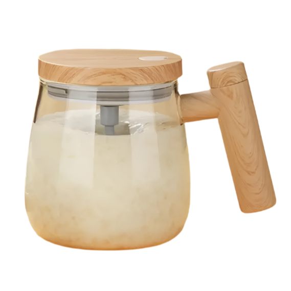 Mød din nye yndlingsmorgenkammerat med WhirlBrew-krus. Dette elegante glaskrus har et indbygget piskeris drevet af et smart trælåg, så du kan røre kaffe, kakao eller matcha uden anstrengelse.