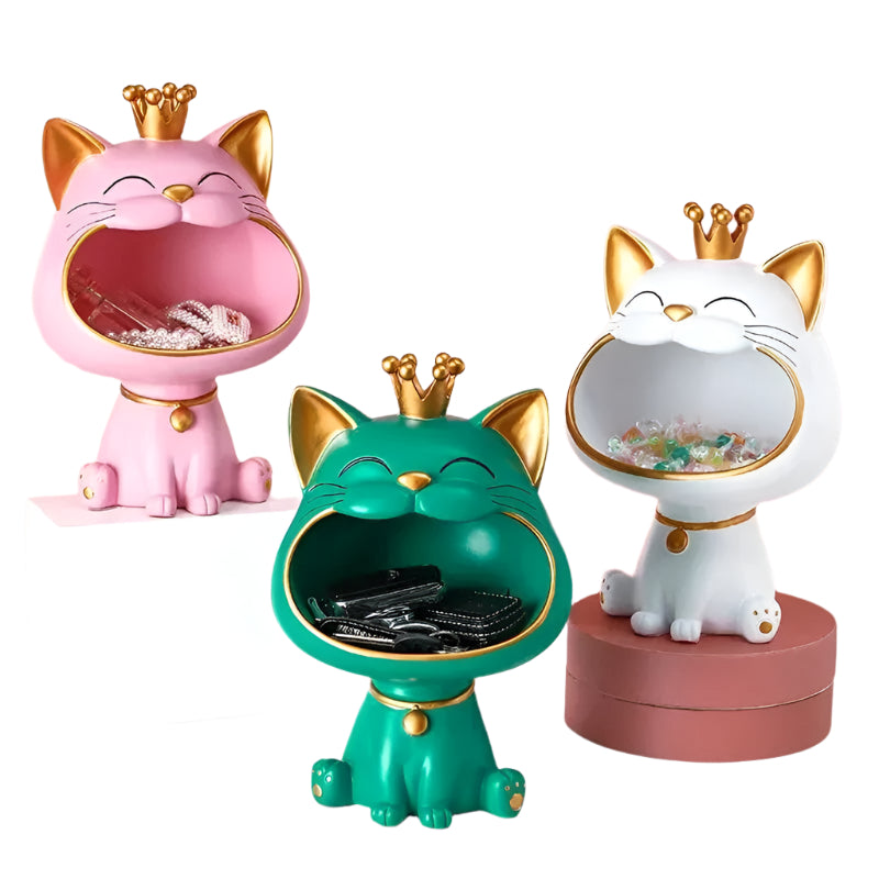 Designet med eftertænksomhed og charme, tilbyder denne opbevaringskasse en kompakt måde at opbevare smykker, nøgler, mønter eller kontorartikler—mens den også fungerer som et fantasifuldt accentstykke til enhver katte-tema eller minimalistisk indretning.